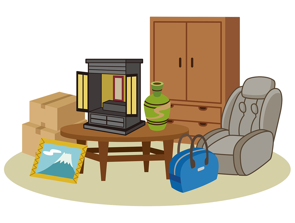 遺品整理は、亡くなった方の残された遺品を整理し、お部屋をきれいに清掃する作業です。ただし、単なる片付けや掃除とは異なります。故人の大切な品は形見分けをしてご遺族様の元へお返しし、人形や手紙など魂のこもった品は供養を行いながら、丁寧に作業を行います。当社では生前整理や遺品整理のサポートはもちろん、その際に出た不用品の回収まで、責任をもって行わせていただきます。もちろん、不用品回収のみのご依頼も承っておりますので、お気軽にご用命ください。また、作業は遺品整理士認定協会から地区統括会員の認定を受けた、遺品整理士が行いますのでご安心ください。
